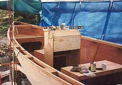More photos. Me, the old guy, two of my sons and my son-in-law got her turned over and ready for the second layer of 3/8" ply on the bottom and fiberglass.