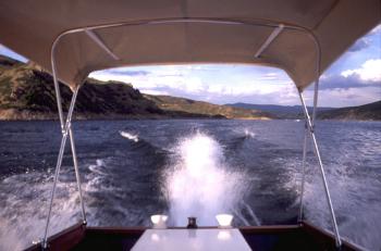I'll attach a few photos of the boat in the water (please forgive me if I have already sent them to you--I can't remember). Top speed is around 31 miles per hour and she gets onto a plane around 18 mph (I added trim tabs to achieve this). Boaters tell me that the elevation here (about 6,500 feet) diminishes performance substantially and that at sea level I can expect an additional 5-7 miles per hour--but maybe that's unrealistic.