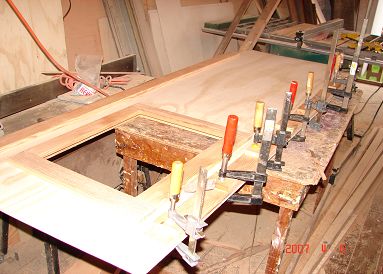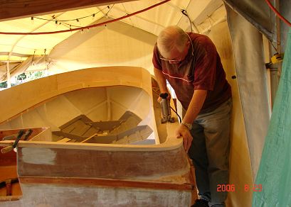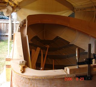 Here is the railing being install on top of the bulwark. The curved section is made from six 1/8" layers glued together.