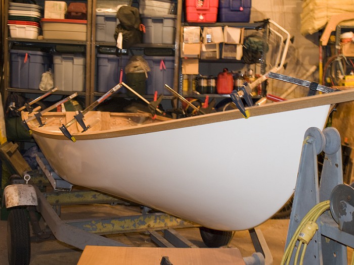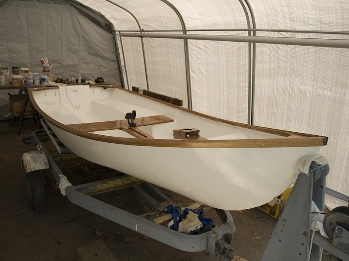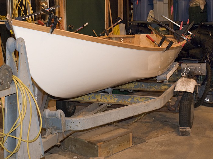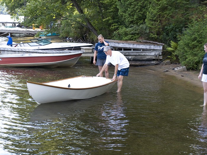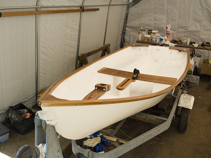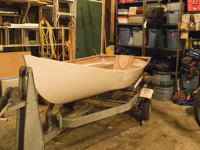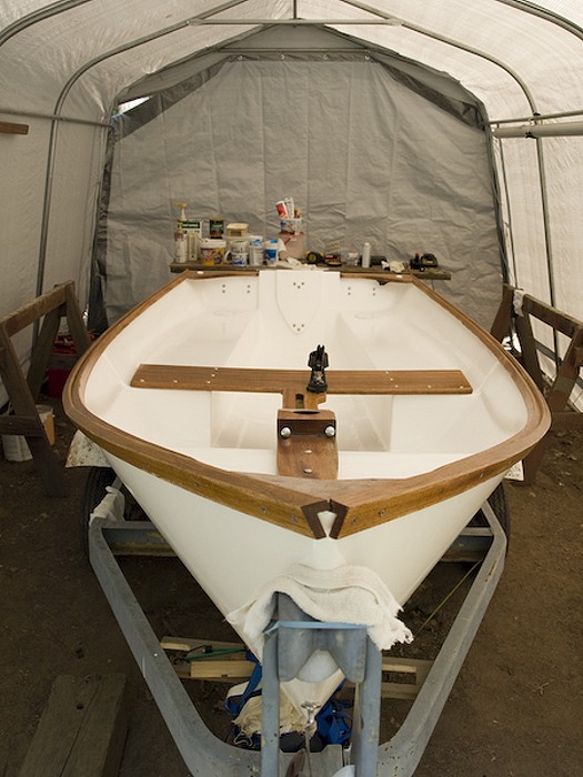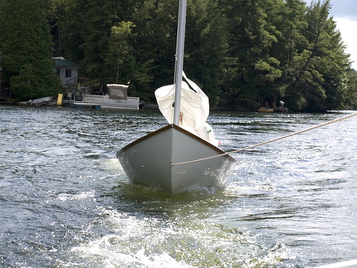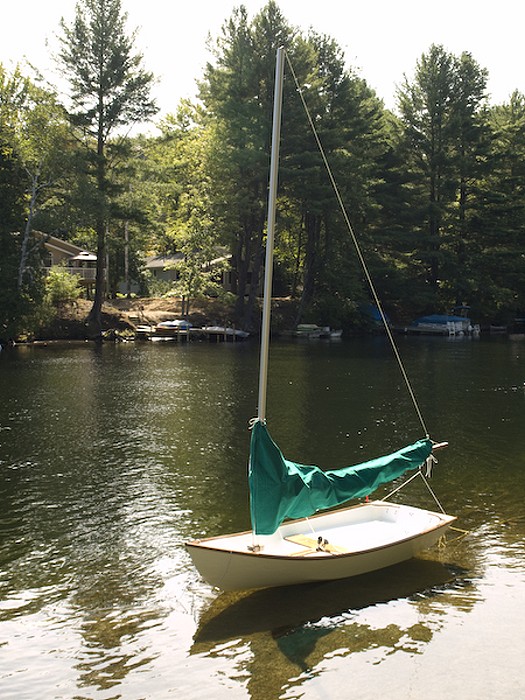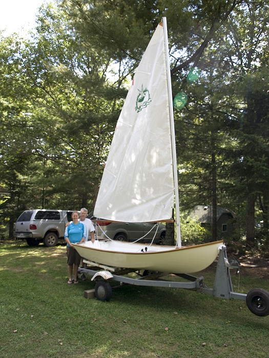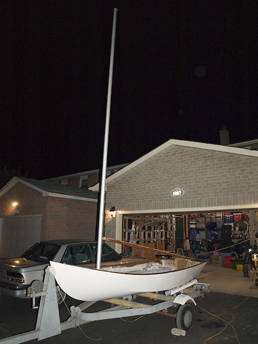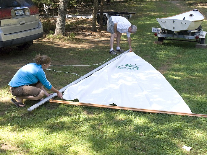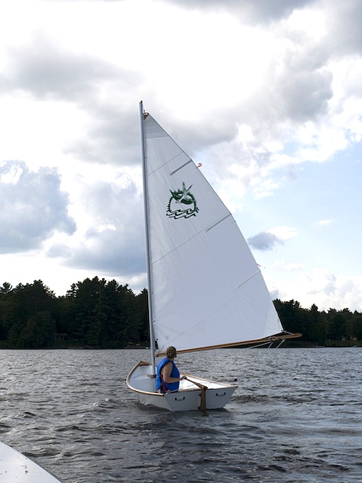 My daughter has been working up the graphics and when her name is ready for the hull we will have the commissioning ceremony to officially receive her name. She will at that point receive the name Sparrow. My daughters all loved the Pirates of the Caribbean movies and Capt. Jack Sparrow. I liked the name as it was the name of the first command of Captain Richard Bolitho in a series of books by Alexander Kent (excellent reading!) The image on our sail is a drawing done by my daughter of the tattoo Capt. Sparrow has on his arm in the movie. She works part time at a company that has the ability to do embroidery, screen printing etc. We obtained material normally used for sail numbers from the sail maker. She did all the layout work and then had the machine cut the image. The result was then transferred to the sail (mirror image on both sides). We think she ended up looking pretty good!