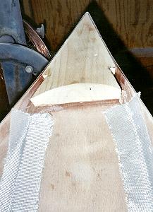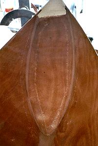 50.(5/24/02) Shows the curve I sanded into the breasthook. Hopefully this will roll into the inner gunnals when installed.