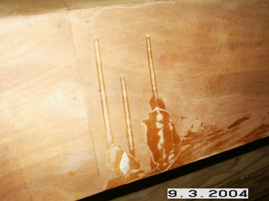 55. What remains of the boat build are the seat, gunnal strips (inside and out) and a varnish job. But before I dig into those I need to get rid of the drips, runs and some glass that inadvertently got stuck to the outside while I was glassing the inside of the hull. Drips weren't bad enough, but some glass got stuck down and that will have to be removed. My first tool to start cutting at this was the cabinet scraper. I also may need the paint scraper if this gets too tough for the hand-held tool. I took the high spots off the drips and brought them down to nearly flush with the outer hull. However, it looks as though I will need the bigger scraper to get the layer of glassoff or at least bring it down to where it's not too obvious. ( Approx. 15 minutes ) Good to be back at it. |