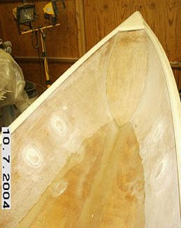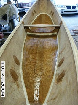 the inside-bottom of the canoe. I mixed 4 1/2 oz of epoxy and added 5 tsp. of