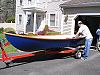 I purchased the full-size frame plans and started construction with the purchase of the steel plate for the centerboard. I then built the centerboard trunk, stem, frames and transom. Once I had all those parts assembled I erected the building form and mounted the frames. After the hull was sheeted, I mounted the building form on wheels and rolled the hull outside, turned the hull over and set it on a cradle with wheels.